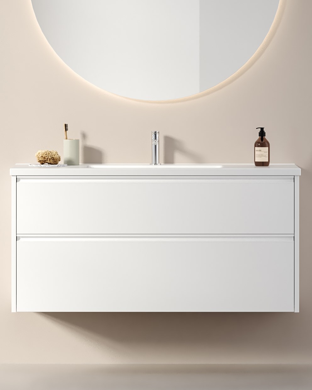Möbelpaket Core med kommod, tvättställ och spegelskåp. Gäller till och med 31 januari 2026 hos alla svenska återförsäljare.