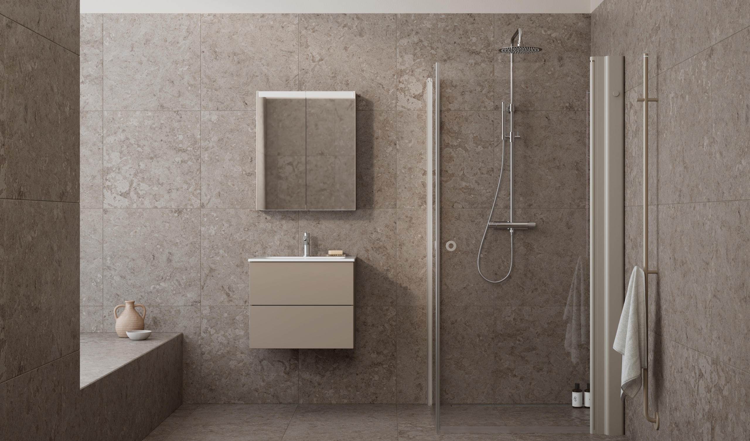 Duschpaket Linc med duschhörna med integrerad förvaring och takdusch. Gäller till och med 31 januari 2026 hos alla svenska återförsäljare.