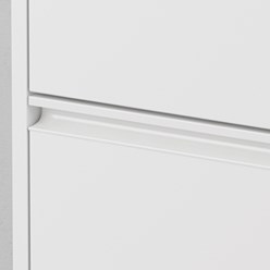 Kommod i färgen Premium White med två lådor, grepplist och tvättställ i porslin.