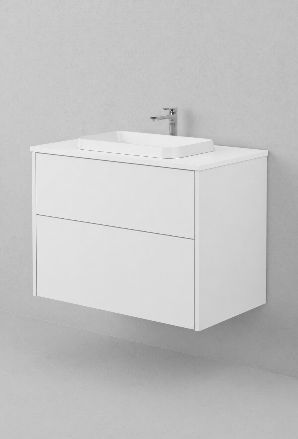 Kommod Grand Solid 80 cm i vitt – komplett med bänkskiva och tvättställ i porslin utan blandare