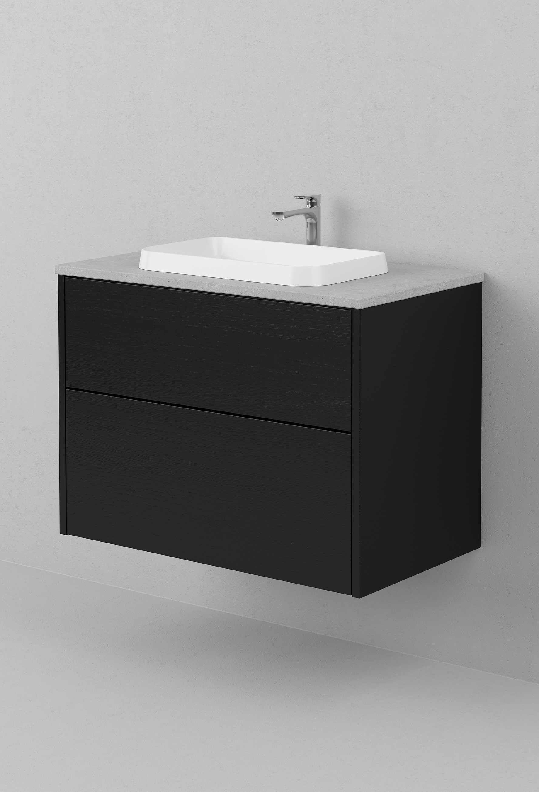 Kommod Grand Solid 80 cm i svart ek – komplett med bänkskiva och tvättställ i porslin utan blandare