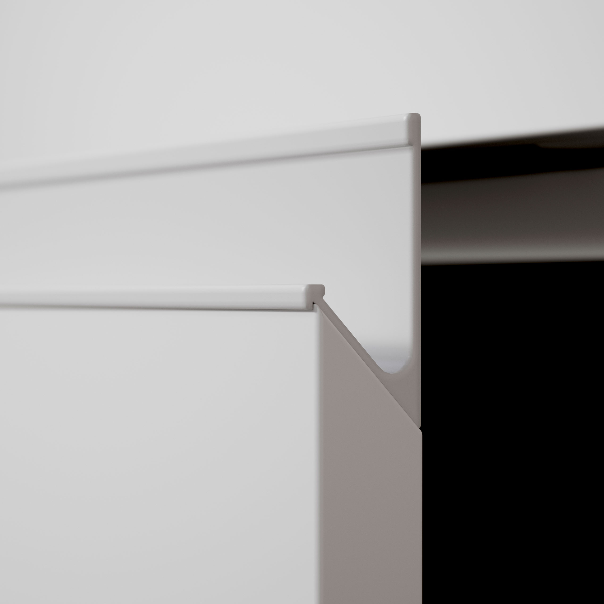 Kommod i färgen Premium White med lucka, grepp Thin i Matte White och tvättställ i porslin. Välj mellan höger eller vänsterställd lucka.