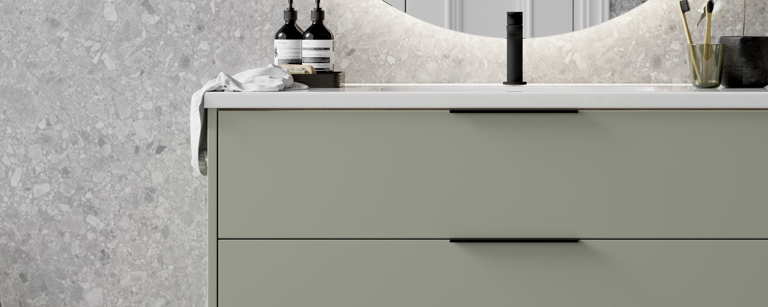 Grand är vår rymligaste möbelserie och bjuder på det bästa av funktion och kvalitet med stora valmöjligheter både på utsidan och insidan. Den släta Solid-fronten till de innanförliggande lådorna skapar ett symmetriskt uttryck med raka linjer mellan lådor och gavlar. Grand Solid tillverkas i Sverige och kommer med ytbehandlingen TX Top Extreme™ som skyddar mot fukt och slitage under minst 15 år.