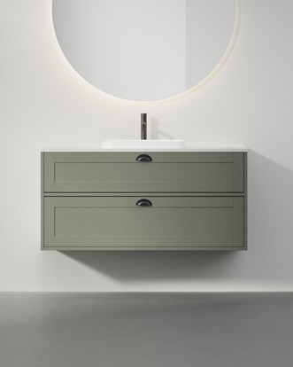 Här får du den klassiska ramluckan i modern skandinavisk kontext tack vare de innanförliggande fronterna. Grand Classic anpassar du enkelt till din egen stil – romantiskt i vitt med tidstypiskt skålhandtag och bänkskiva med kalkstenskänsla, eller en mörk NCS som du själv väljer tillsammans med tvättställ och bänkskiva i svart och grått. Prova dig fram i vår studio. Alla kommoder