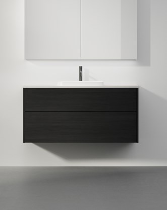Möbeln får sitt harmoniska och balanserade uttryck tack vare det elegant infrästa greppet där lådorna möts. Välj din Grand Grip i ett av våra fanér – alla ytbehandlade med TX Top Extreme™ – för en verkligt exklusiv och tålig möbel. Välj mellan heltäckande tvättställ i porslin och infällt tvättställ i bänkskiva. Prova dig fram i vår studio och skapa din egen möbel med matchande högskåp. Alla kommoder