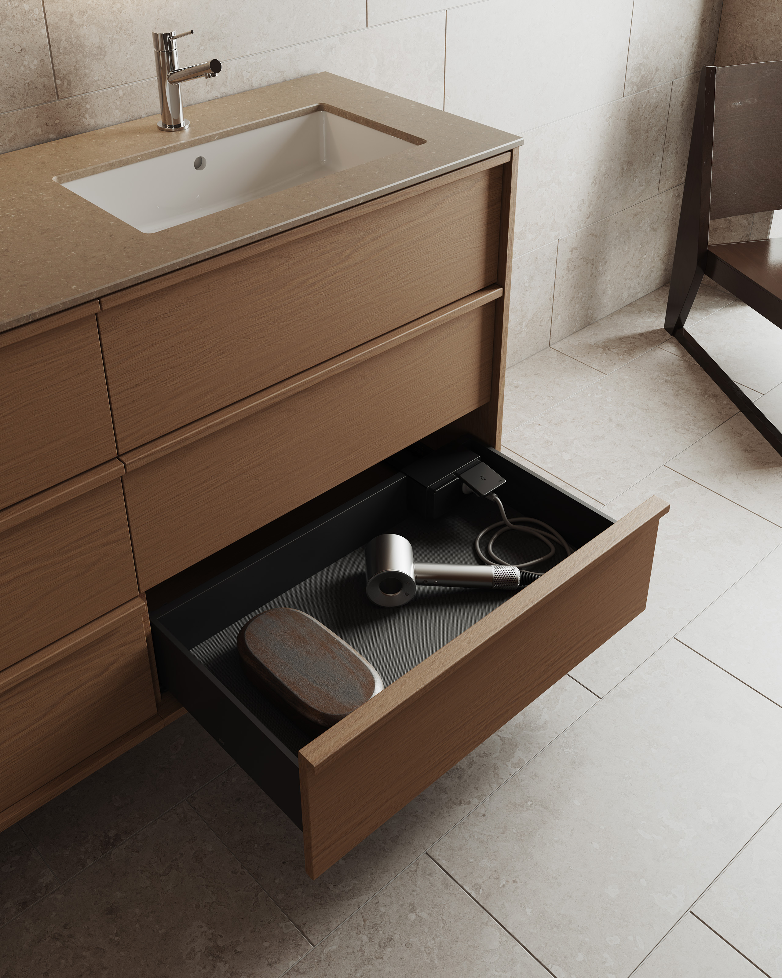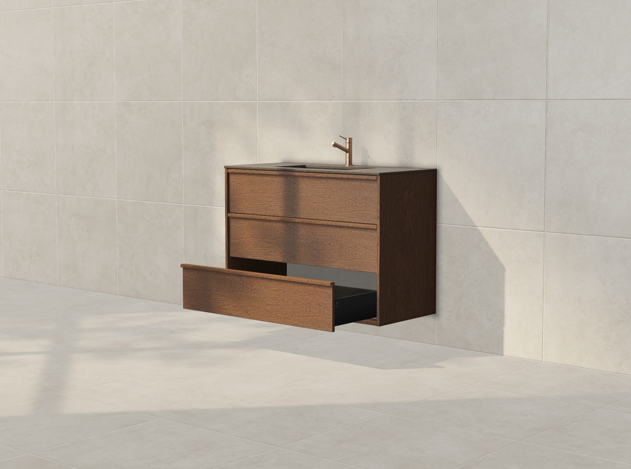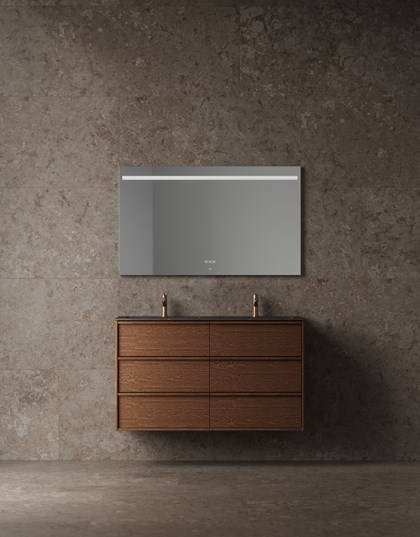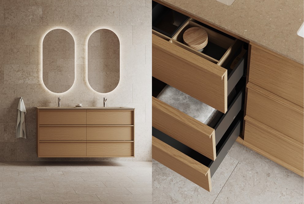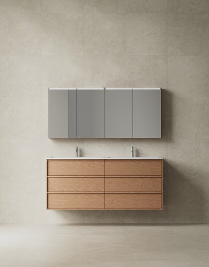 Terra är badrumsmöbeln för dig som vill ha mer av allt – fler lådor, mer förvaring och ett mer uttrycksfullt fanér än i våra övriga serier. En möbel som tar plats med både karaktär och uttryck, och som levererar funktion och kvalitet på högsta nivå med många valmöjligheter när det gäller fronter, färger & fanér samt tvättställ.
