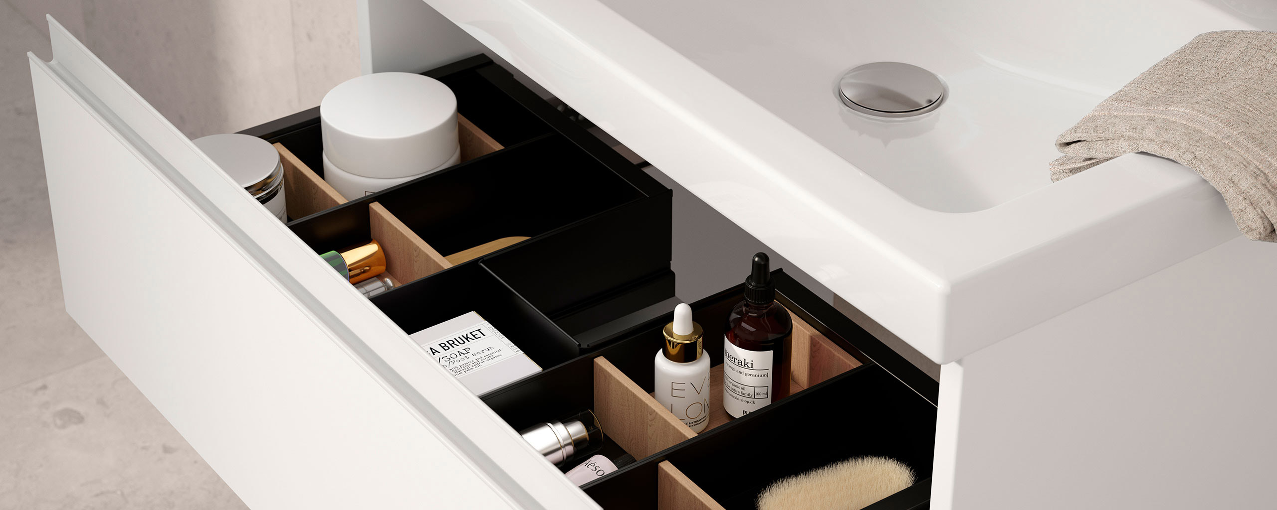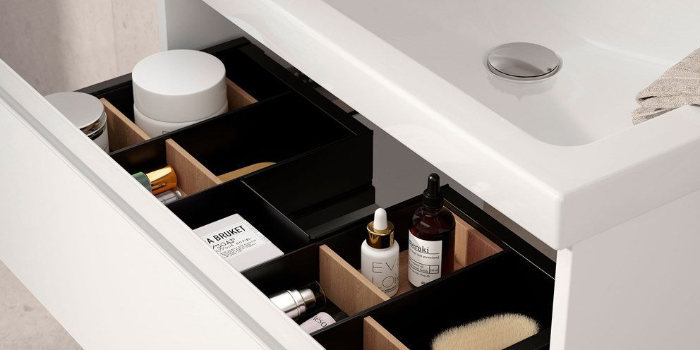 Funktionella Viskan har en välbalanserad design och erbjuder optimal förvaring i alla storlekar, från 40 cm med lucka till 120 cm med fyra lådor. Viskan Grips rena linjer och tydliga karaktär sätts av grepplisten i aluminium som både förstärker designen och gör möbeln extra tålig. Serien tillverkas i Sverige och kommer med ytbehandlingen TX Top Extreme™ som skyddar mot fukt och slitage under minst 15 år.