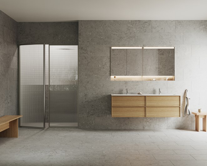 Alvaret är som landskapet det är döpt efter – vilt, kargt och fullt av liv. En granitkeramisk tolkning av öländsk kalksten, där tidens påverkan från vind, vatten och kalkrika lager får sätta uttrycket. Resultatet är en levande sten med tydlig karaktär och naturliga skiftningar. För badrum som vågar tar plats – skapat för att hålla över tid.