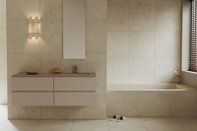 Stenvide är som kalkstenen den inspirerats av – mjuk, nedtonad och varsam. En granitkeramisk tolkning av gotländsk kalksten, där tidens stillsamma påverkan från hav, vind och ljus ger stenen dess harmoniska uttryck. Resultatet är en lugn och balanserad yta med finstämda skiftningar och en naturlig elegans. För badrum med stilla självklarhet – skapat för att hålla över tid.
