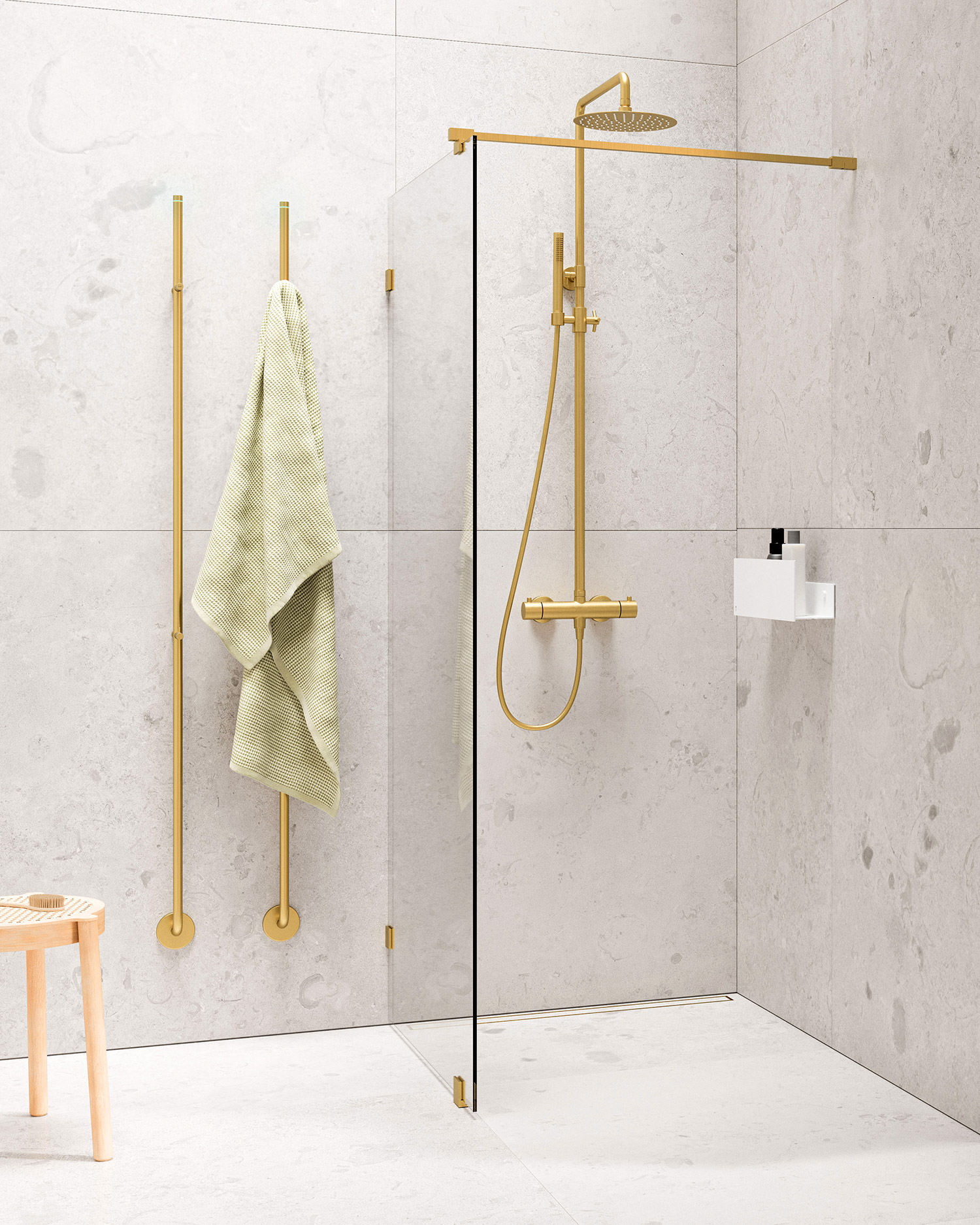 Brushed Brass ger badrummet en varm och elegant känsla med sin gyllene, borstade yta. Kombinera med marmor eller natursten för ett exklusivt uttryck, eller välj vita och beige toner för att skapa en luftig och ljus atmosfär. Djupa gröna eller blå nyanser kan ge en effektfull kontrast, medan ekfanér tillför en naturlig och harmonisk balans. Scrolla ner för tips och inspiration.