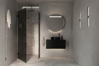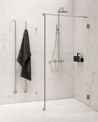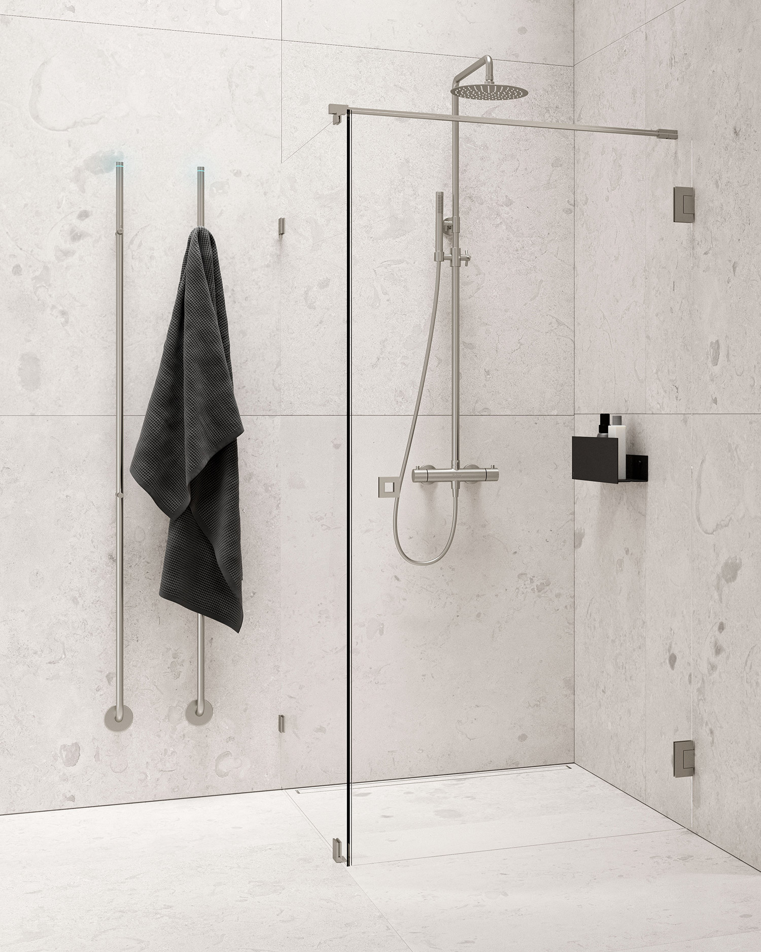 Brushed Stainless ger en tidlös och modern känsla som är enkel att matcha med olika material och färger. Finishen fungerar som en solid bas för både minimalistiska och mer kontrastfyllda badrumsstilar. Kombinera med natursten eller betong för en naturlig kontrast som passar den industriella looken eller välj ekfanér för en varmare och mer inbjudande atmosfär. Scrolla ner för tips och inspiration.