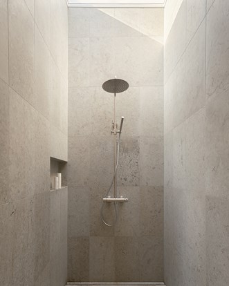 Badrum inredda i gråskalans toner och nyanser får ett lugnt och stilrent uttryck. Här möts kalksten, skiffer och microcement med inslag av svartbetsad ek och rostfritt stål. Tillsammans skapar materialen en balanserad helhet med kontraster mellan varmt och kallt, matt och blankt, ljust och mörkt. Inspireras av exempel på badrum där gråtonerna ger plats för både stillhet och karaktär – tidlöst, personligt och hållbart.