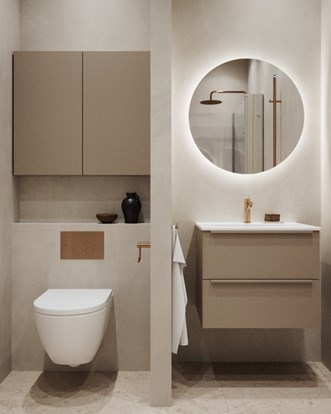 Utforska badrum där färgen får ta plats och sätta tonen för hela rummet. Här handlar det om att skapa energi och uttryck – från dova pasteller till kraftfulla kulörer. Väggar, möbler och detaljer får personliga färgval som gör badrummet unikt och levande. I Studio kan du prova våra möbler i olika färger och hitta just den NCS-kulör som passar din stil och känsla. Här har vi samlat några bilder där färgen skapar karaktär – modigt, lekfullt och personligt.