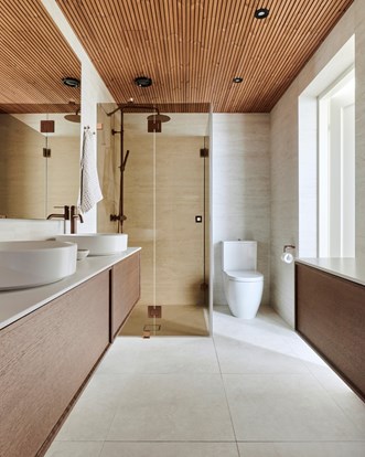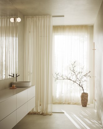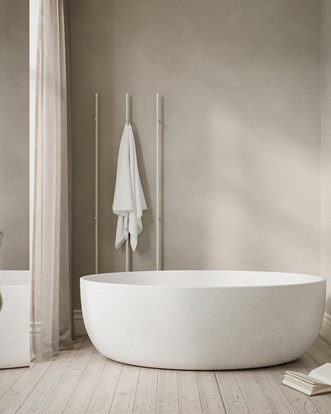 Inspireras av badrum där skandinavisk design med japanska undertoner skapar ett tidlöst uttryck – ett rum att trivas i och stanna kvar i. Här möts den nordiska naturens mjuka färgskalor med den japanska längtan efter balans och stillhet. Ljus och mörk ek ger värme och kontrast, medan kalksten och avskalade former skapar ett badrum där naturen alltid känns nära. Resultatet är en plats som andas lugn och eftertanke – där form, funktion och hållbara materialval samspelar i stillsam harmoni.