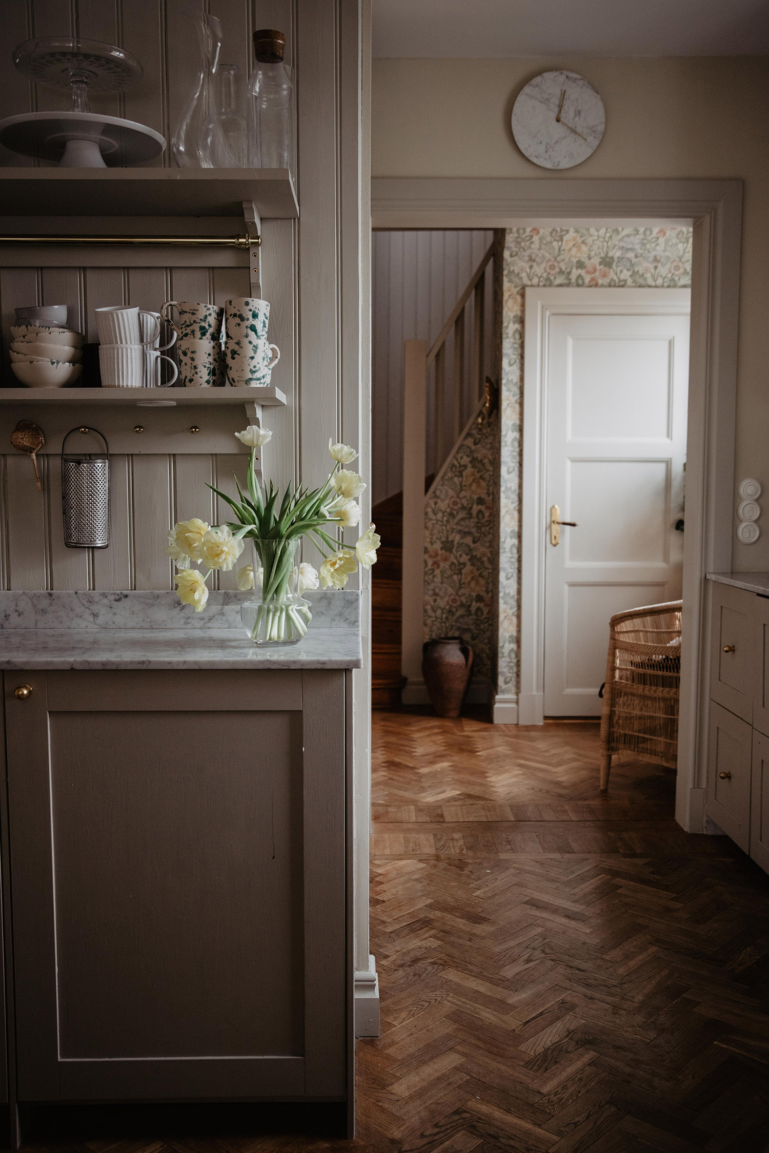 Lantligt badrum med gott om förvaring hemma hos stylisten Emelie Sundberg