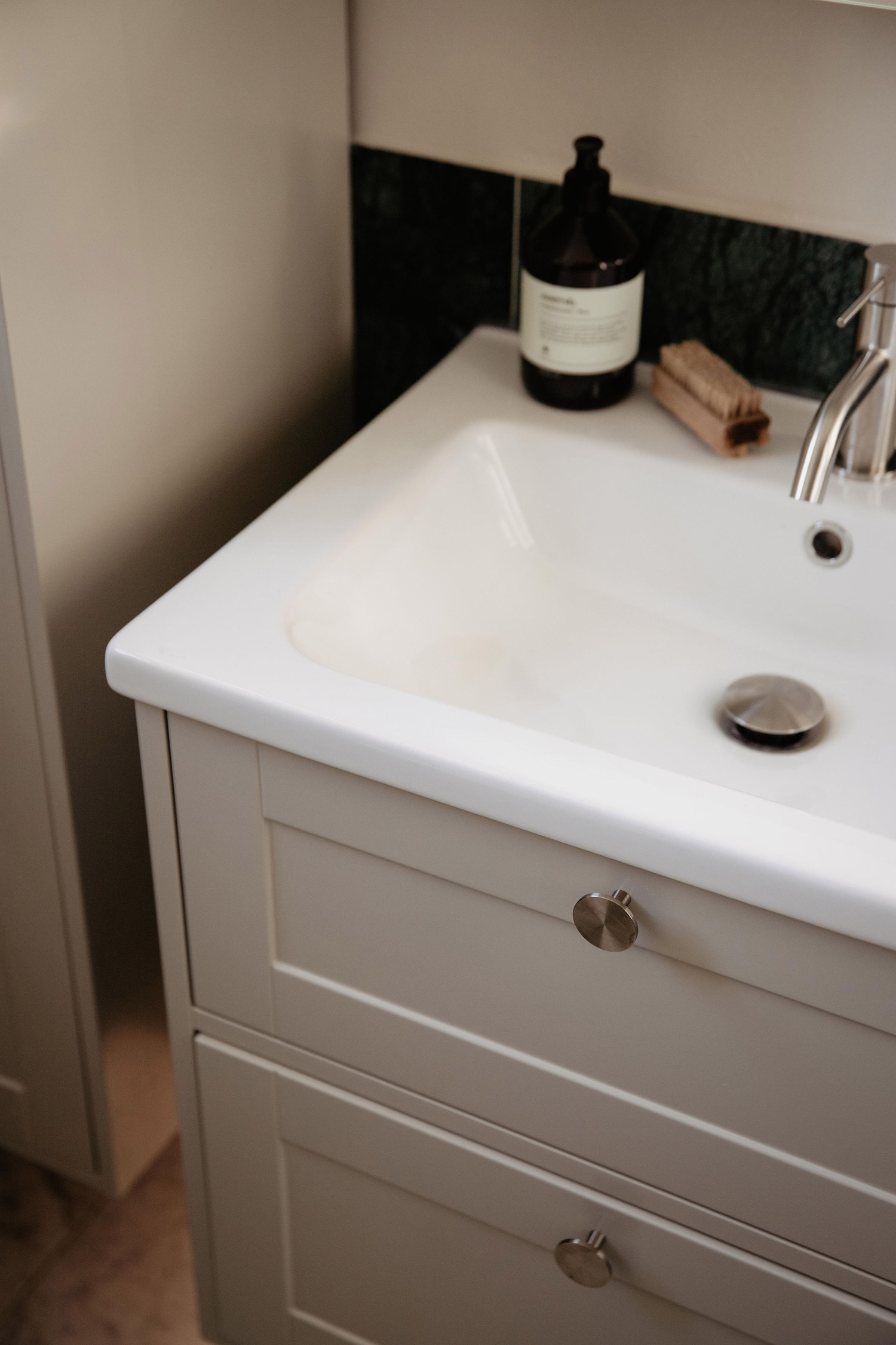 Familjens hemprojekt är många och avlöser varandra i snabb takt. Ett av de senare var att se över badrummet som relativt nyligen renoverats av den tidigare ägaren. På agendan stod alltså inte en helrenovering utan snarare en noga genomtänkt anpassning utifrån familjens behov och smak. Vad fick stanna och vad fick lämna? Det ska vi strax ta reda på.
