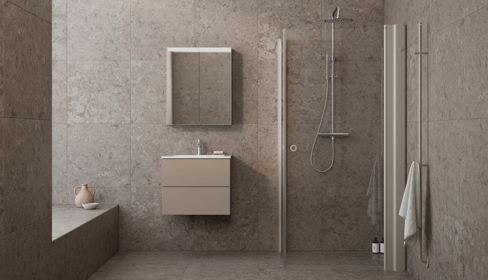 I det lilla badrummet passar en duschhörna med vikdörrar perfekt. I duschserien Linc Flex finns flera varianter av duschhörnor där du kan vika en eller flera dörrar dubbelt och på så sätt kunna få till en större dusch trots den begränsade ytan. De vikbara dörrarna underlättar också när du ska gå in i duschen och gör att du undviker att slå i eventuell inredning som är placerad intill. När du inte duschar trollar du bort dörrarna genom att vika in dem helt mot hörnet.