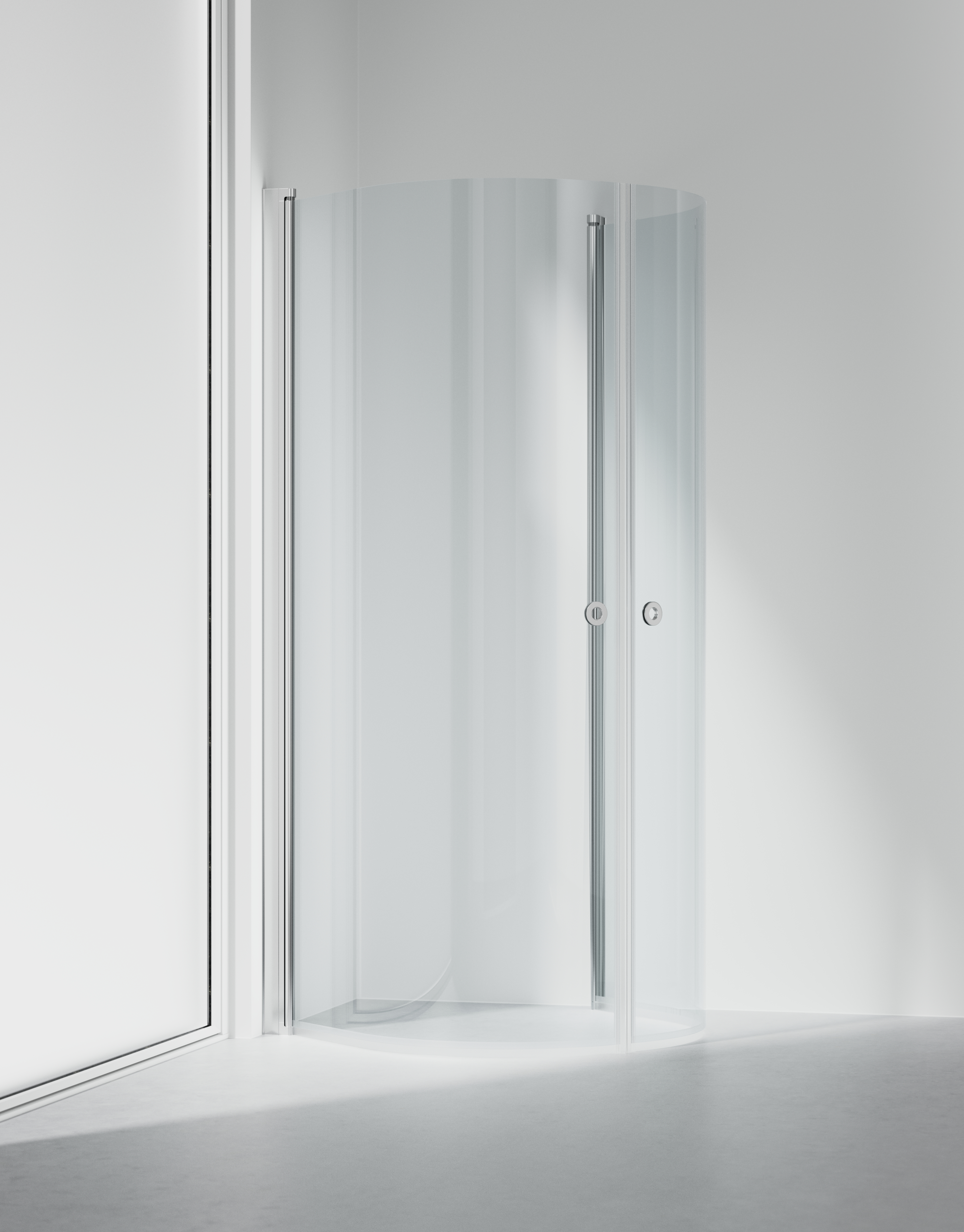 Arc Original 13: En stilren duschhörna i 8 mm glas med en dörr och en fast vägg.