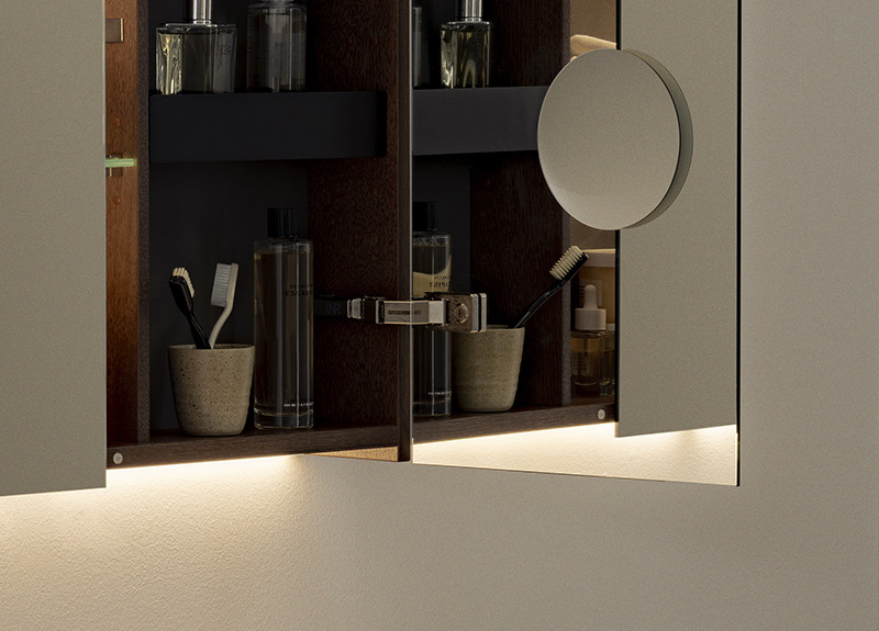 Utforska vårt breda urval av speglar och spegelskåp i olika former och storlekar med smarta funktioner såsom justerbar och dimbar LED-belysning.