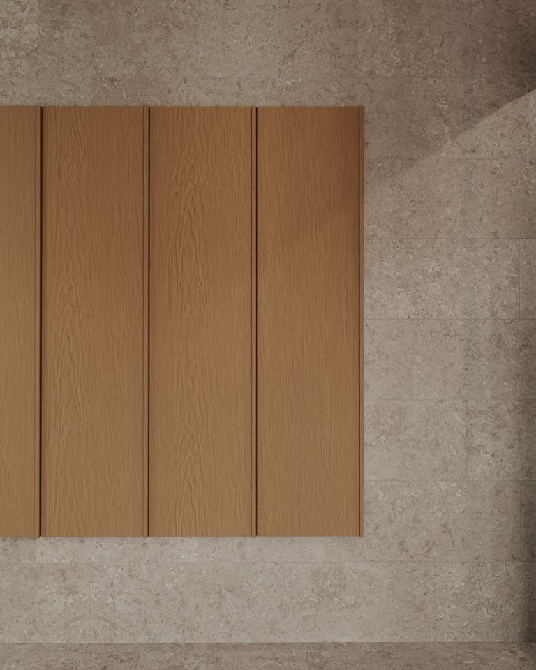 Fanérfronten har ett större, levande mönster som ger en naturlig och exklusiv känsla. Fanéret är av samma typ som på högskåp Grip, vilket skapar ett harmoniskt uttryck som passar särskilt bra till Terra och även samspelar vackert med Core. Välj mellan Natural Oak och Dark Oak för att sätta rätt ton i ditt badrum. Den integrerade grepplisten i massiv ek löper längs hela dörrens långsida och blir en naturlig del av den stilrena designen. Dörren kan monteras höger- eller vänsterhängd och stängs mjukt med soft close.