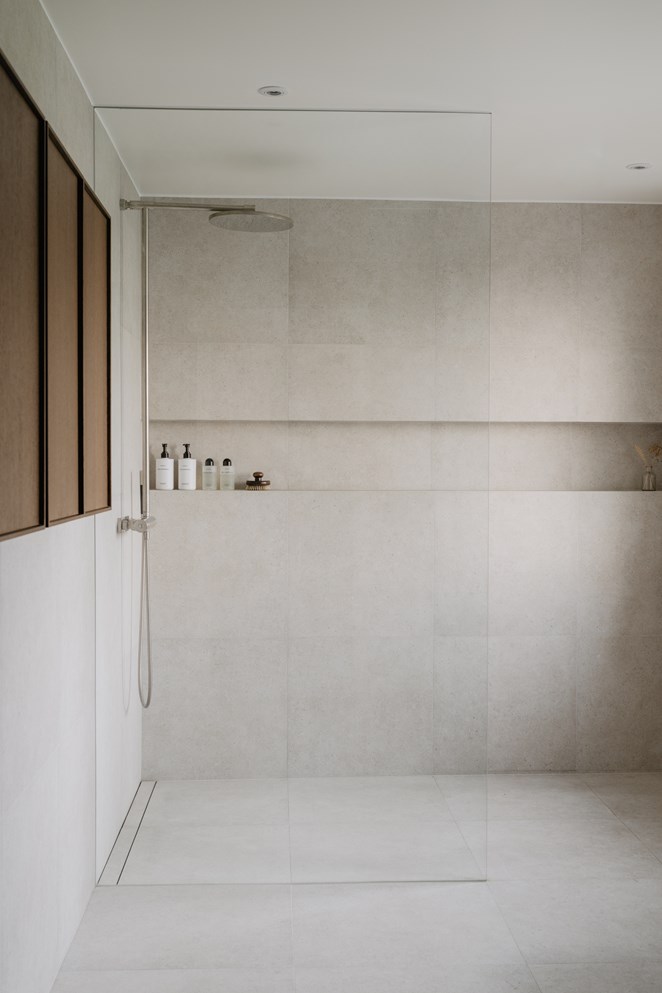 Takduschset i rostfritt stål.