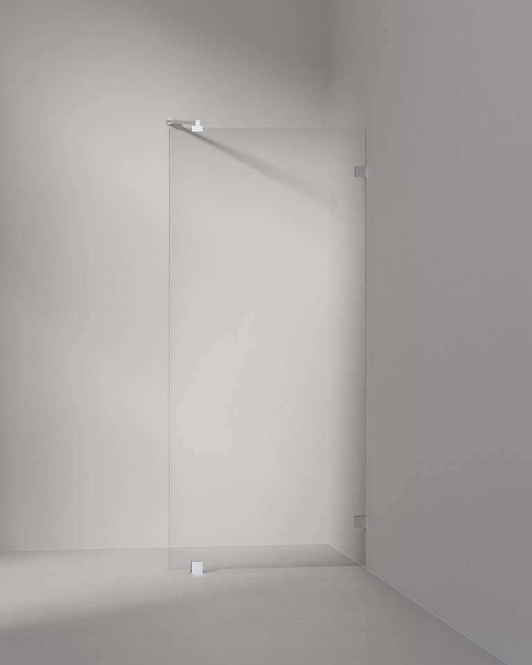 En fast vägg i 6 mm glas. Finns i 900 mm och måttanpassat utförande.