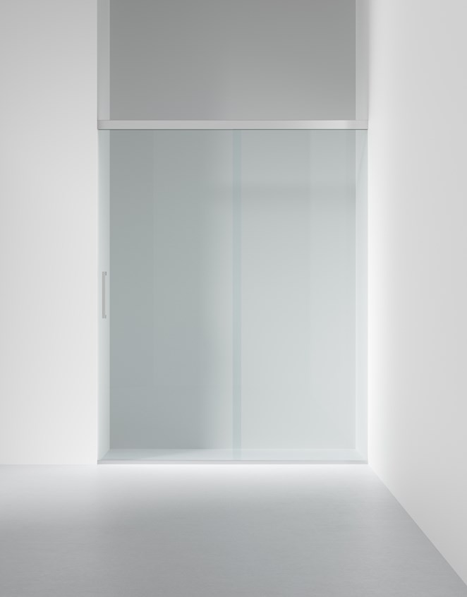 Skjutdörr i 8 mm glas för placering i nisch. Måttanpassas inom angivna intervaller för att passa just ditt utrymme. Välj mellan flera vackra glas.