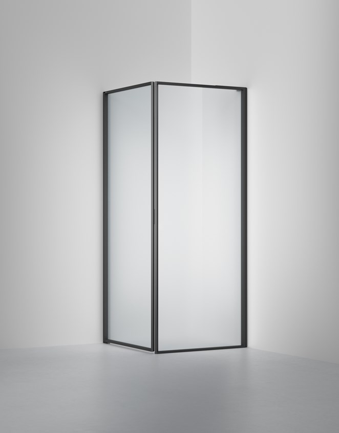 Edge tar plats i badrummet likt en vacker tavla, symmetriskt inramad i anodiserad aluminium i två finishar. Ramens unika konstruktion skapar ett sofistikerat skuggspel mot väggen. Glaset vetter inåt duschen vilket framhäver ramens utvändiga form och underlättar rengöring. Navet i Edge är gångjärnet med axel i rostfritt stål – ett utmärkt exempel på den perfektion i mekaniken som kännetecknar serien. Ramens hörnor är i massiv aluminium med en innovativ konstruktion som döljer allt som stör ögat. Modellerna med dörr lyfter elegant vid öppning och har dolda, utbytbara tätningslister infällda i ramen.