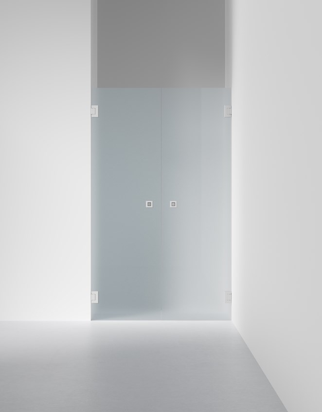 Två dörrar i 8 mm glas. Måttanpassas inom angivna intervall. Anpassas enkelt efter just dina mått.