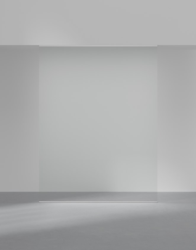 En fristående lösning i 8 mm glas för placering mitt på en vägg. Måttanpassas inom angivna intervall och från golv till tak upp till 2700 mm. Anpassas enkelt efter just dina mått.