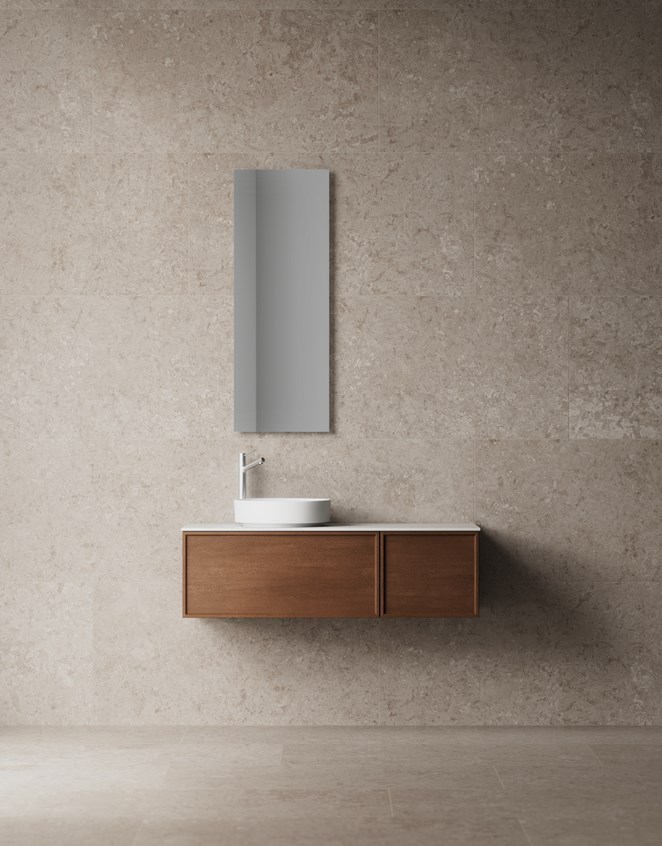 En rymlig kommod med klassisk ramlucka. Helt tvättställ i porslin eller med bänkskiva. TX Top Extreme™.