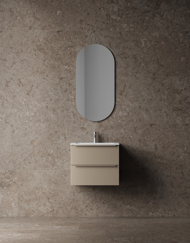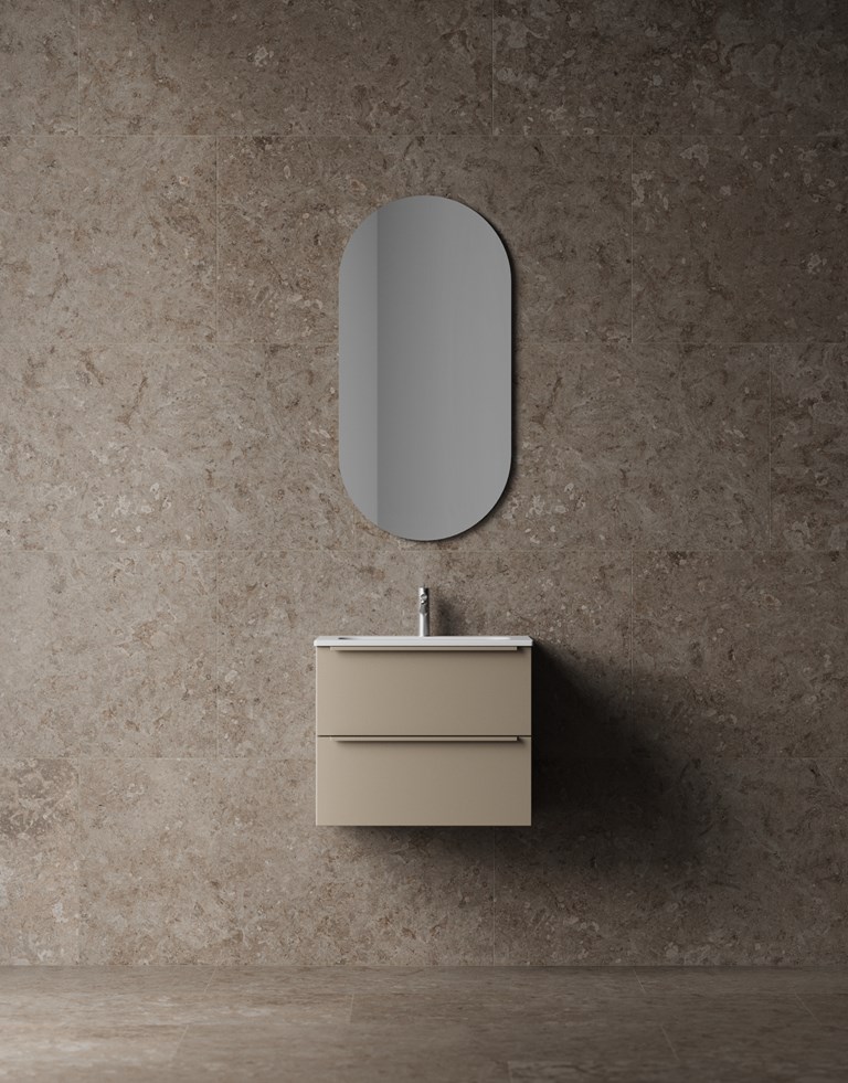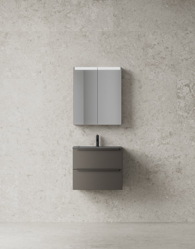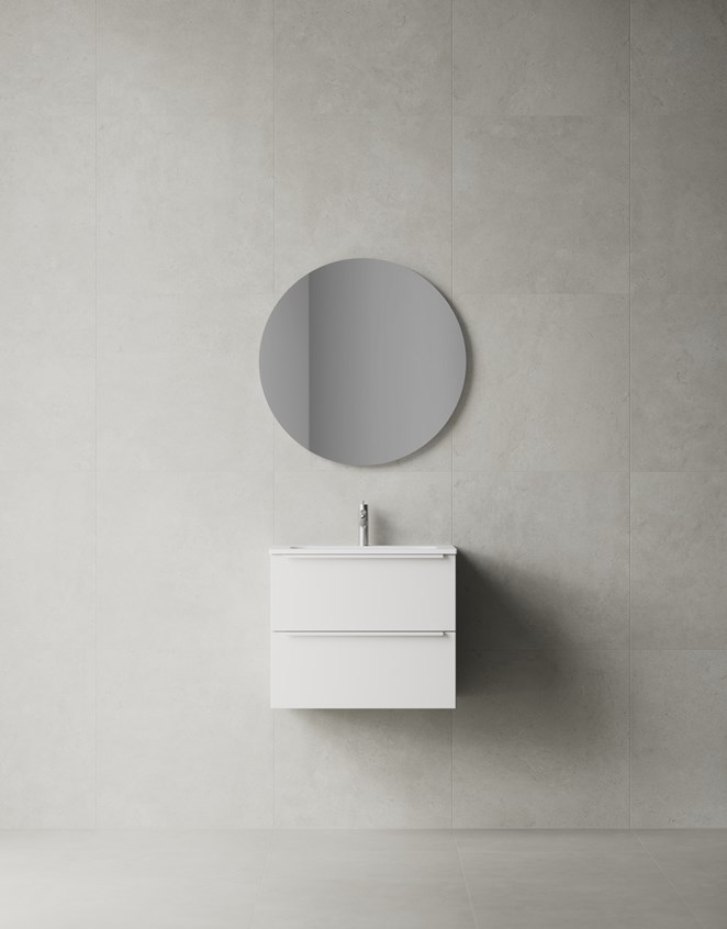 En rymlig kommod med infräst grepp. Helt tvättställ i porslin eller med bänkskiva. TX Top Extreme™.