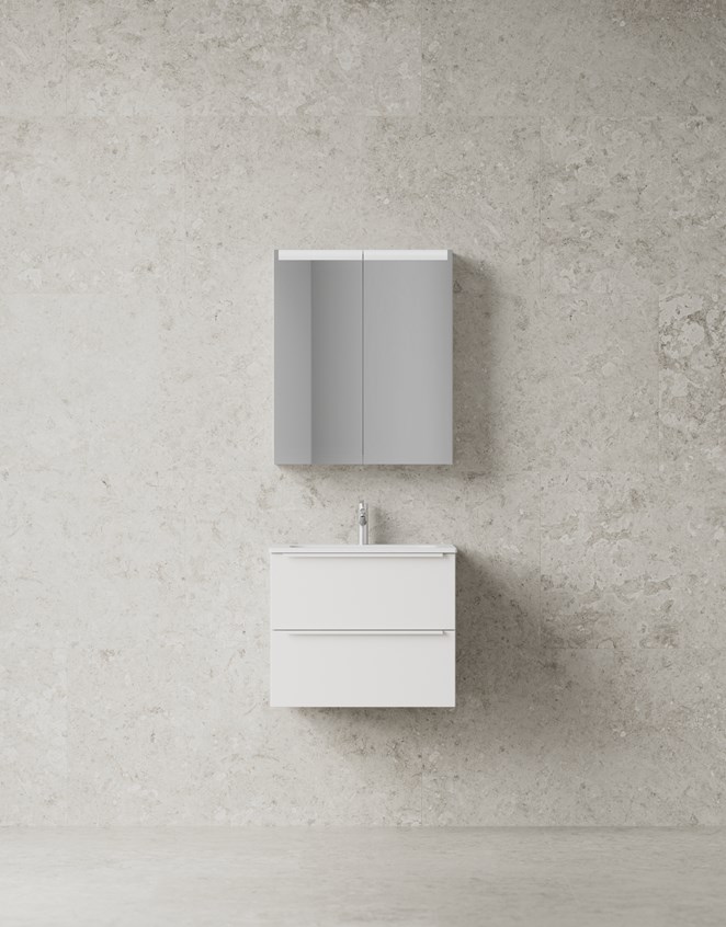 Avant 60 kombinerar stilren design med funktionalitet. Det ovanpåliggande handtaget, färgmatchat med kommoden, skapar ett enhetligt uttryck. Välj mellan klassiskt porslinstvättställ, solid surface med matt yta, en bänkskiva med ovanpåliggande tvättställ i rund design eller underlimmat tvättställ. Lådornas generösa förvaring, soft-close och antiglidmattor ger smidig användning. Komplettera med tillval som sensorstyrd belysning, både i och under kommoden, och dubbelt eluttag. Svensktillverkad med hög kvalitet.
