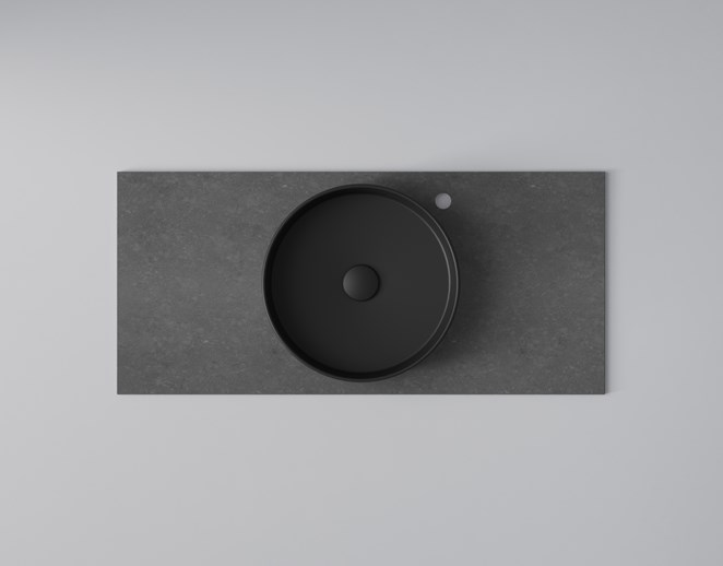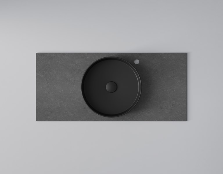 • Bänksskiva Flow: B: 1008 mm H: 12 mm D: 460 mm Tvättställ Soak: Ø: 399 mm H: 107 mm.