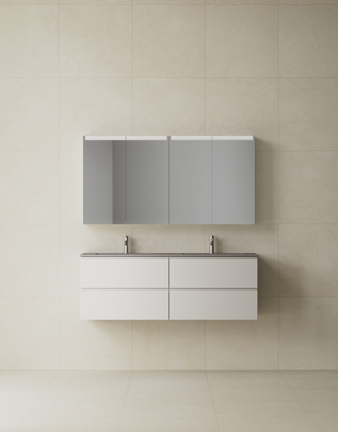 Dubbla tvättställ ger flexibilitet i vardagen. Välj mellan tvättställ i porslin eller solid surface med mat yta. Tvättställen finns som ett tvättställ med dubbla hoar eller bänkskiva med ovanpåliggande eller underlimmat tvättställ. Lådornas släta design tillsammans med soft-close och antiglidmattor ger både en stilren look och en smidig, praktisk användning. Ett grepp med integrerad grepplist ger en sömlösdesign till den släta luckan. TX Top Extreme™ ytbehandling ger lång hållbarhet. Komplettera din möbel med sensorstyrd belysning i och under kommoden, lådinsats i ek och dubbelt eluttag.