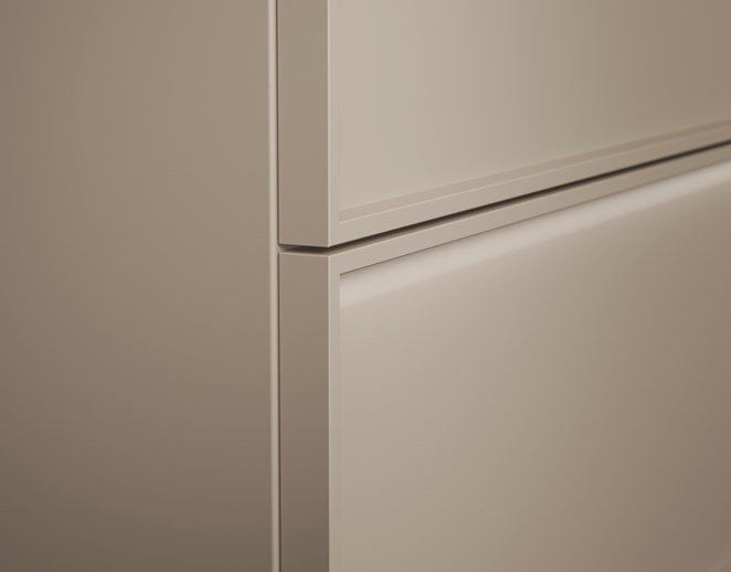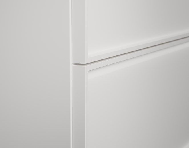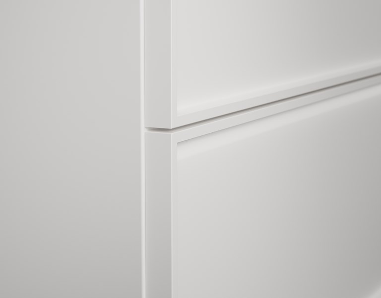 Kommod med slät front, omsorgsfullt inramad med ett dolt grepp i ramen som ger enkel och diskret öppning. Välj mellan fanér med en modern retrokänsla eller din favoritfärg på NCS-skalan. Kombinera med porslinstvättställ, solid surface med en matt yta, eller bänkskiva med tvättställ för att skräddarsy din kommod. Lådor med soft-close och antiglidmattor ger praktisk funktionalitet, medan ytbehandlingen TX Top Extreme™ skyddar mot fukt och slitage. Svensktillverkad med tillval som sensorstyrd belysning, dubbelt eluttag och lådinsats i ek.