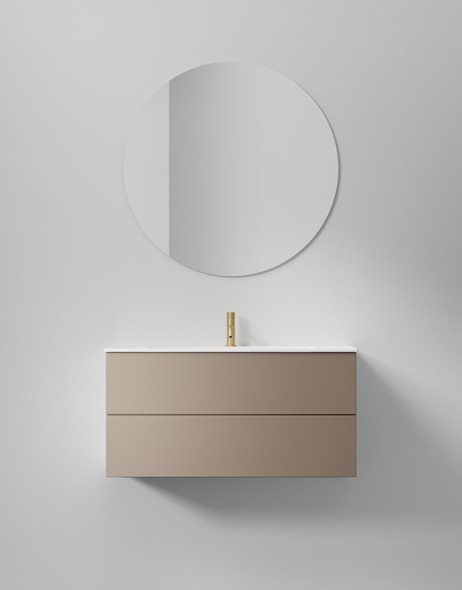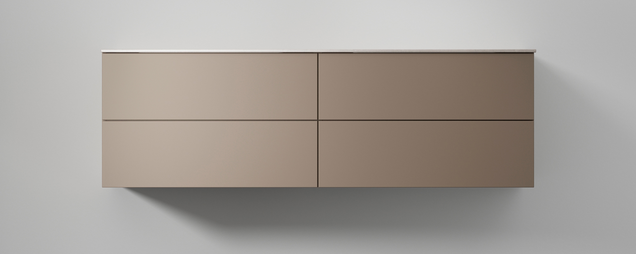 Svenskproducerad kommod med släta luckor, tillgänglig i flera kulörer, som passar många olika stilar. Sätt din egen personliga touch med ett hav av öppningsalternativ inklusive push. Välj mellan klassiskt tvättställ i porslin och tvättstället i solid surface med en matt yta. Bänkskiva med ovanpåliggande tvättställ i rund design är en annan valmöjlighet. Extrautrusta din möbel med ett eller flera tillval som sensorstyrd belysning i och under kommoden samt dubbelt eluttag.