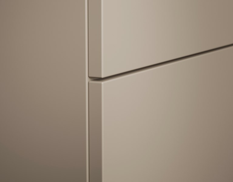 Lackerad MDF i kulören NCS S 4005-Y20R. Glans 8.