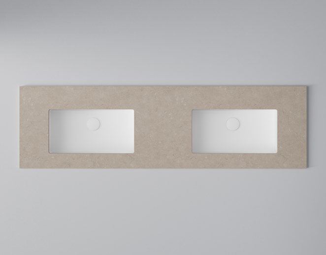 • Bänkskiva Wave med underlimmat tvättställ: B: 1408 mm H: 12 mm D: 460 mm.