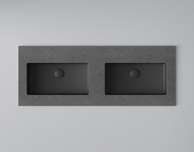 Dolt, diskret grepp i kommod med dubbla tvättställ.