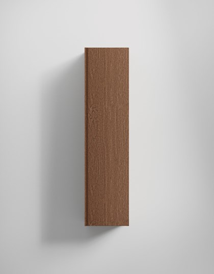 Kompakt högskåp i fanér med grepplist i massivt ek längs hela dörrens långsida. Ger varm träkänsla och maximerar förvaring på liten yta.