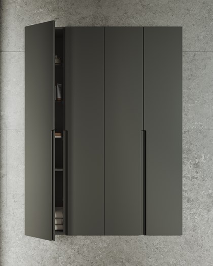 Vårt smalaste högskåp med dubbelsidig spegeldörr och fyra flyttbara hyllplan. TX Top Extreme™.