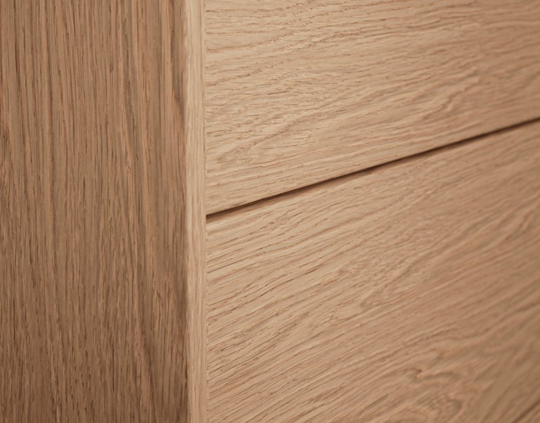 Kommod med hel lådfront med fackindelad innerlåda. Fingerskarvade detaljer i massiv ek. TX Top Extreme™.