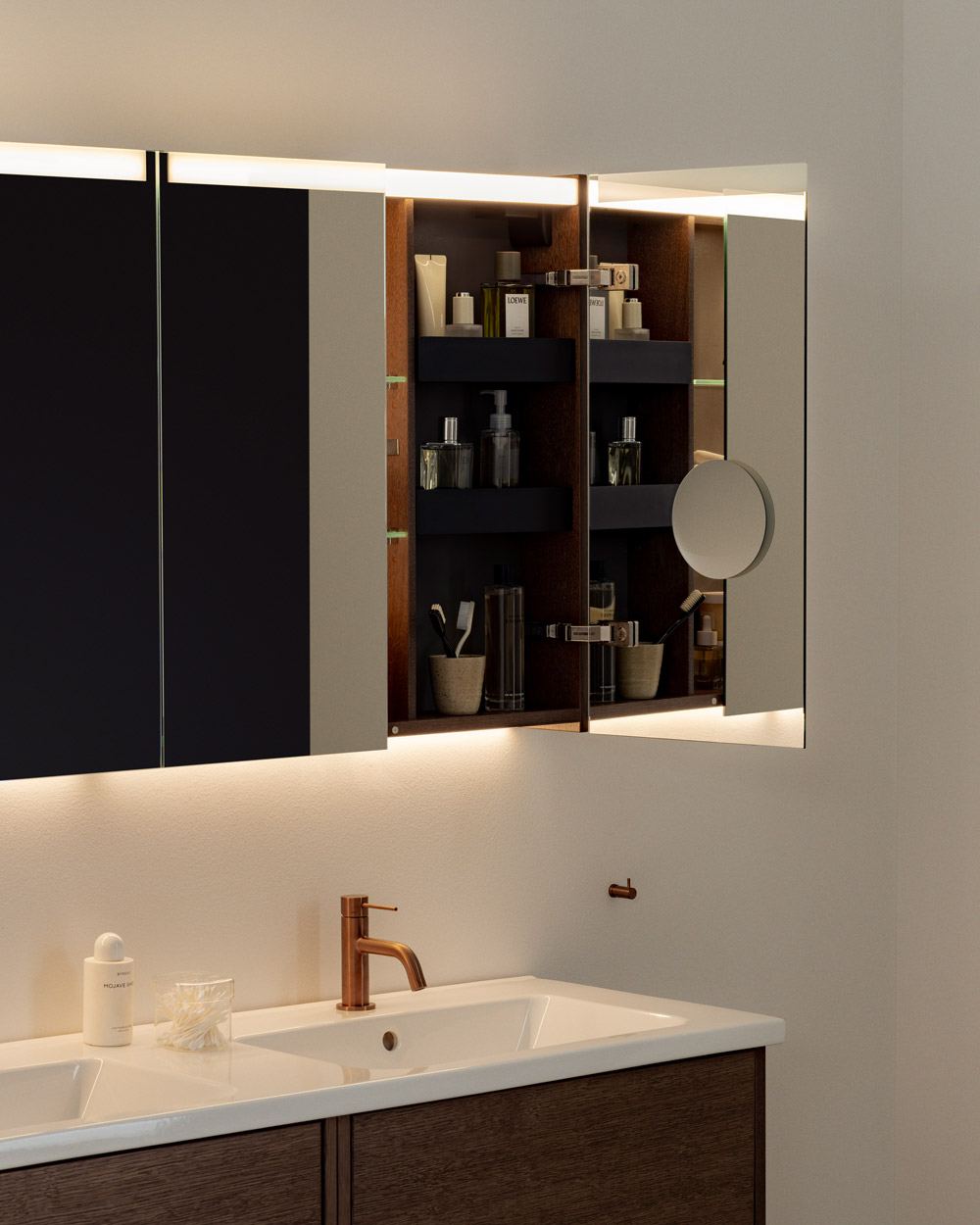 Ta god tid på dig när du utforskar våra speglar och spegelskåp. Rätt spegel sätter stilen på badrummet och ger både ljus, djup och rymd till ditt badrum. Lägg till praktisk och snygg LED-belysning för extra stämning. Våra speglar och spegelskåp matchar bredderna på samtliga våra kommoder och finns i både runt och fyrkantigt utförande och med många spännande och praktiska tillval bakom luckorna.