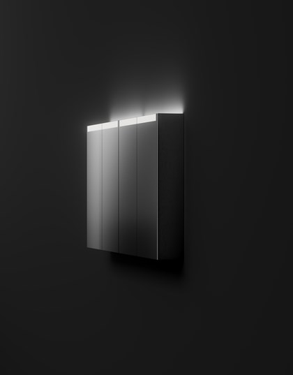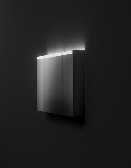 Kommod med dubbla tvättställ och dolt grepp i modern front.