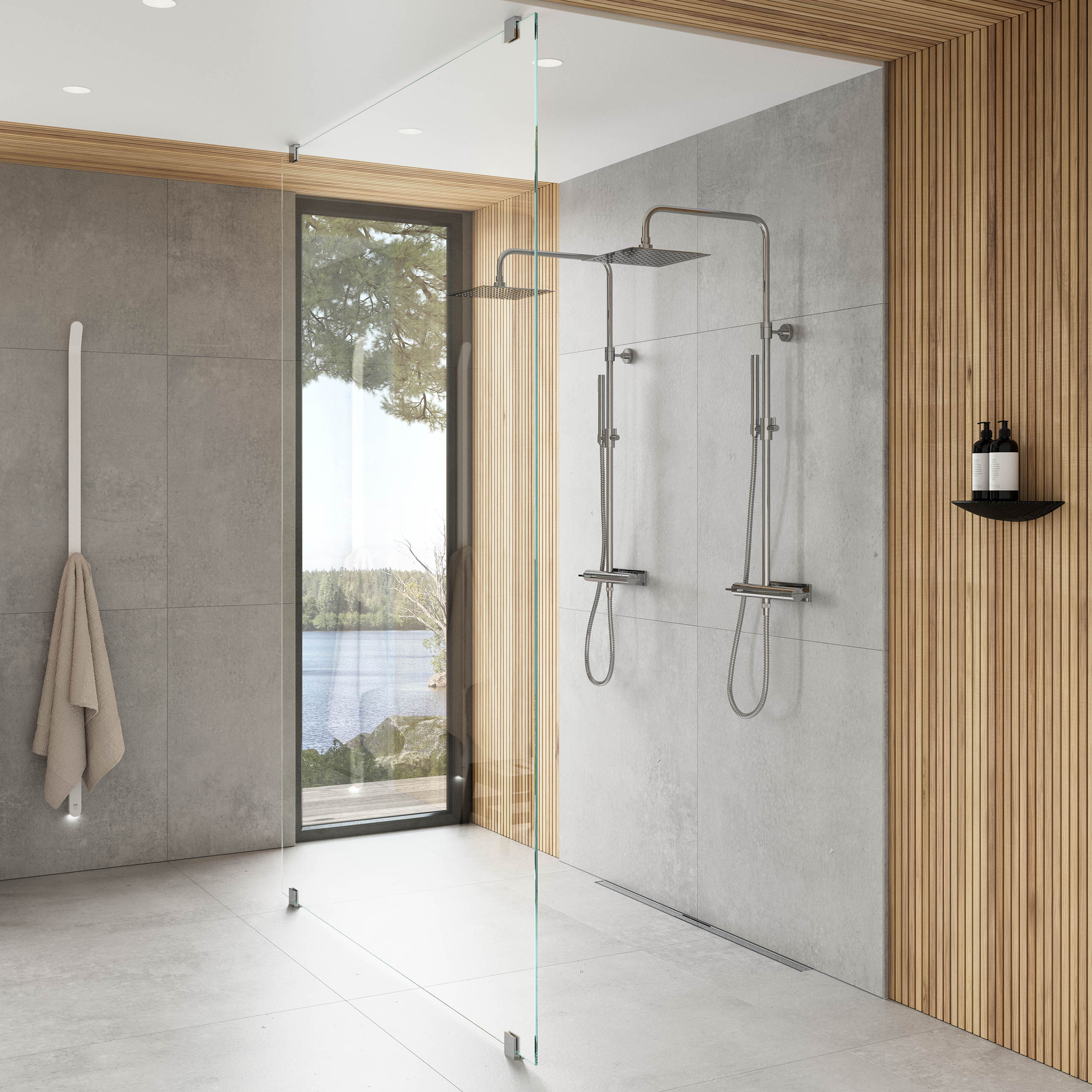 Översikt glas till våra duschlösningar.