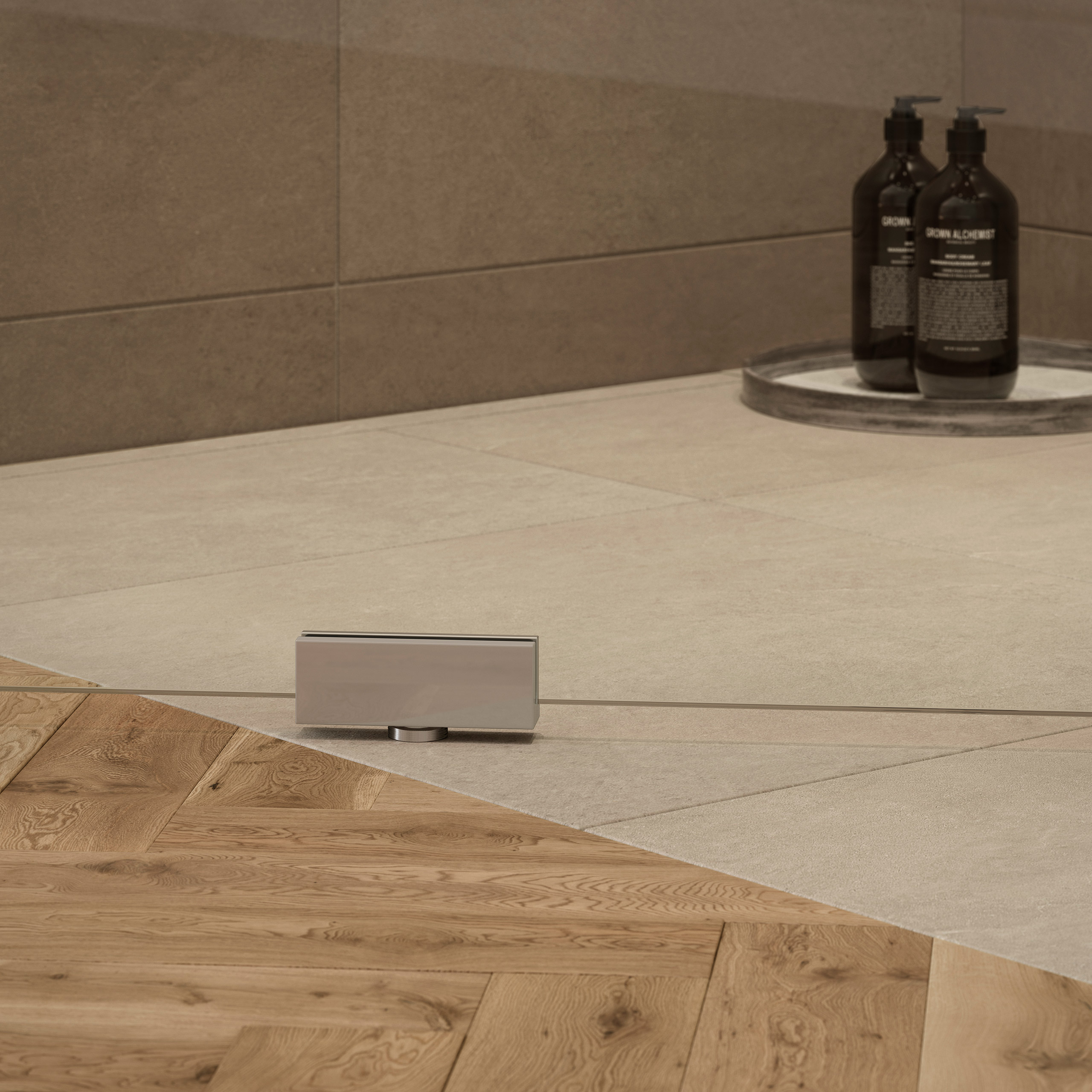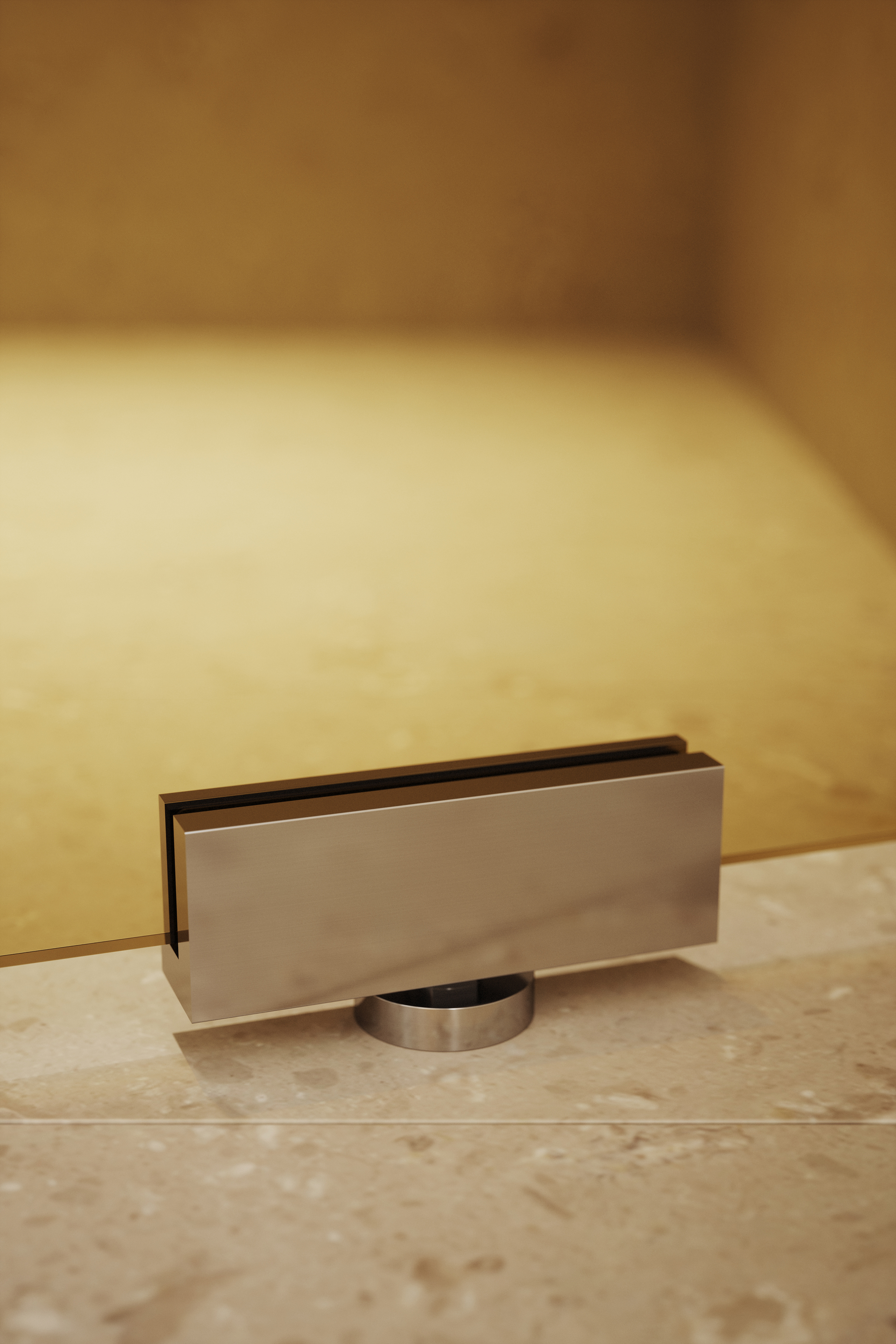 Nedtill roterar glaset runt pivotgångjärnet som fräses ned 5 mm i klinkern. Konstruktionen påverkar varken tätskikt eller värmeslingor.